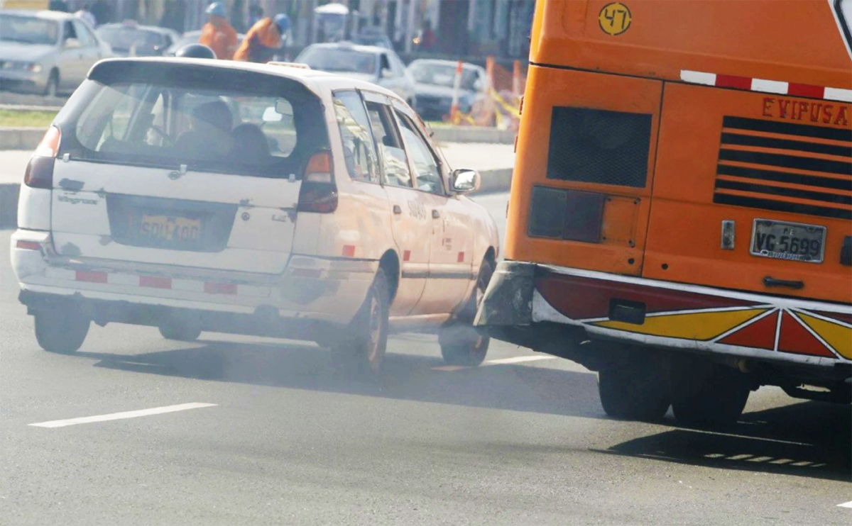 El parque automotor antiguo es un motor de contaminación. Las emisiones de partículas PM2.5 en Perú triplican los límites recomendados por la Organización Mundial de la Salud (OMS), ubicándose entre las más altas de América Latina. Según un informe de la Universidad de Chicago, la contaminación vehicular provoca que los limeños pierdan un promedio de 2.2 años de vida. A nivel nacional, las infecciones respiratorias causaron más de 25 000 muertes en 2023, y el transporte es señalado como una de las principales fuentes de contaminación.